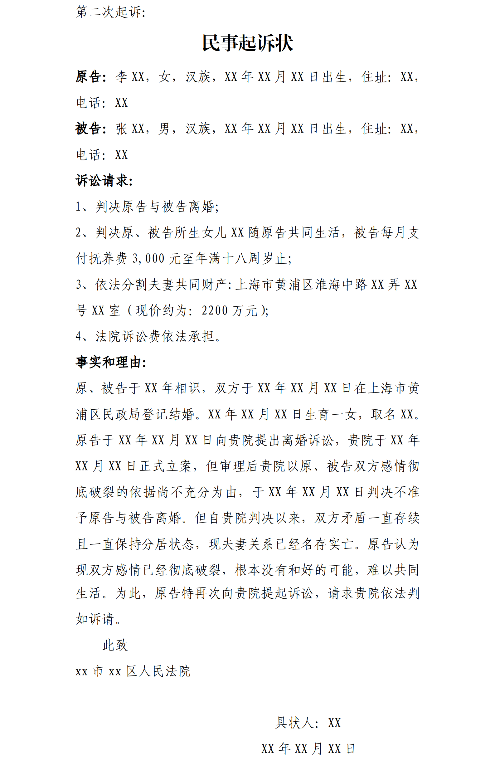 #離婚起訴的訴狀應(yīng)該寫什么內(nèi)容?##起訴離婚##訴訟離婚糾紛#